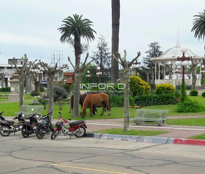 El hecho ocurrió sobre las 10hs en la plaza principal de la ciudad, donde 3 caballos estaban pastando y varios vecinos sorprendidos subieron fotografías en redes sociales manifestando su sorpresa e indignación por el hecho.