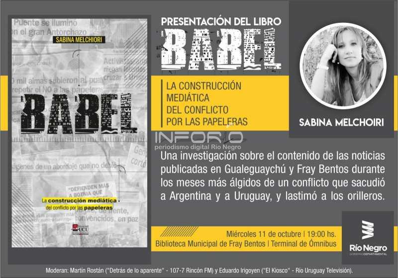 Este miércoles a las 19hs en la biblioteca de la terminal de ómnibus de Fray Bentos, la periodista gualeguaychuense Sabina Melchiori presentará "Babel. La construcción mediática del conflicto por las papeleras".