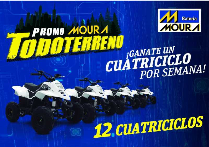 Cada cliente que compre su batería Moura, podrá completar un cupón y de esa manera participa en un sorteo semanal de un cuatriciclo. En total son 12 los sorteos que se realizan.