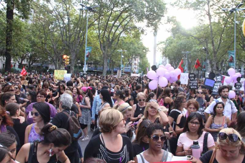 Fotografía extraída de Teledoce de la movilización del día de la mujer en Montevideo en 2017.