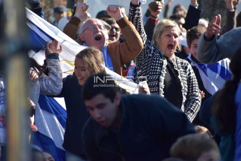 Este lunes se armó un escenario con pantalla gigante y desde allí se vivió el partido que si bien tenía a los dos equipos ya clasificados, se definió quien se quedaba con el primer lugar.