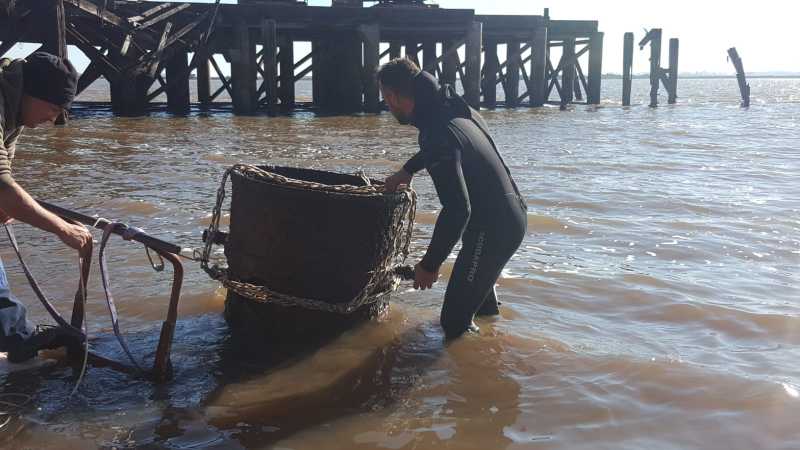 En la jornada de este miércoles se retiró del río Uruguay el objeto que fue hallado en la exploración subacuática realizada por arqueólogos en el río Uruguay.