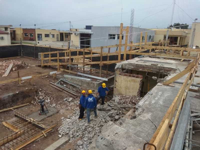 En el inicio se procedió a hacer "las demoliciones de las lozas existentes para luego construir nuevas" confirmó a InfoRIO el arquitecto Carlos Sobrino. En lo que refiere a demolición de estructuras "ya está casi completa". Al mismo tiempo ya se está cimentando para lo que será el entrepiso que "va a separar la cocina del sector de internación".