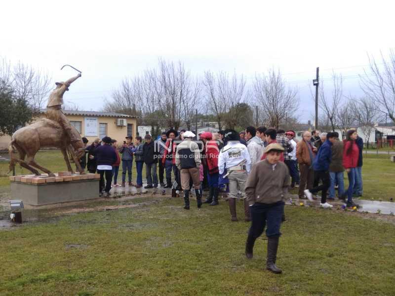 A pesar del mal tiempo reinante, una nutrida asistencia de vecinos se congregó ayer en Mellizos, donde en una jornada de gran algarabía, se celebró la concreción de tres proyectos para la localidad: Las inauguraciones del Monumento al Jinete y de la Oficina Pública Rural, y la habilitación del nuevo Salón Comunitario.