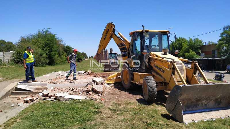 Este viernes la intendencia de Río Negro derrumbó la garita de AFE en el acceso a Fray Bentos por Bulevar Artigas en la zona de "Las Barreras".