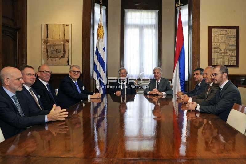 El presidente de la República, Tabaré Vázquez, acompañado por el ministro de Economía y Finanzas, Danilo Astori; el director de la Oficina de Planeamiento y Presupuesto, Álvaro García; el secretario de Presidencia, Miguel Ángel Toma, y el prosecretario de Presidencia, Juan Andrés Rob...