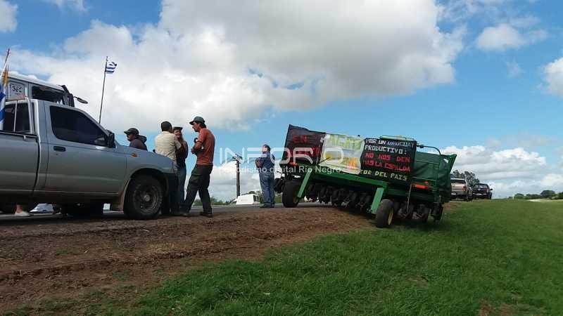 Un grupo de vecinos de Colonia Tomás Berreta se moviliza en esta jornada al costado de la ruta 2 en el kilómetro 300 reclamando por la situación del sector agropecuario. Miguel Vila, uno de los productores explicó que "el alto costo de producción, el costo país, y un montón de situac...