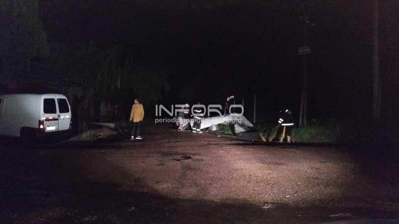 Según la información primaria, hay un par de familias que sufrieron voladuras de techos en la zona de la sede del club Tulipán, donde inclusive parte del techo quedó en la calle obstruyendo la circulación.