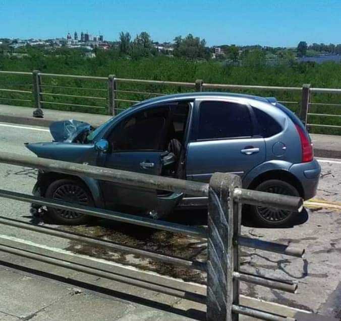 La rueda cayó hacia abajo del puente y el vehículo menor resultó totalmente destrozado en su parte delantera. Una señora que iba en el mismo sufrió fractura en miembro inferior derecho y viene siendo atendida en el Hospital Mercedes. El conductor del rodado menor presentó lesiones leves al igual que un niño que iba en el automóvil.