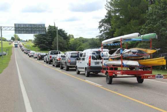 La fila de automóviles que retornan a Argentina superó la estructura del Área de Control Integrado y llegó en el mediodía de este martes hasta el acceso aéreo que desvía el tránsito hacia la planta de UPM y la ciudad de Fray Bentos.