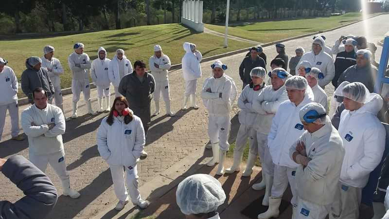 En la asamblea se explicó que en principio la empresa había decidido dar los días de licencia que restaban al personal y luego a mediados de junio se resolvió enviar al seguro parcial de paro a la plantilla de trabajadores que componen la parte de producción de la planta de Fray Bentos.