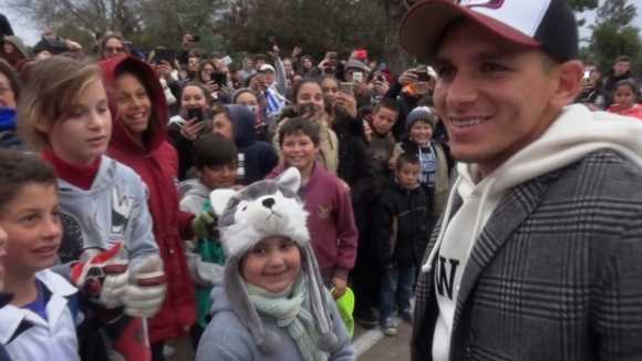En la mañana del miércoles, el futbolista asistió a escuela 5 de Fray Bentos, el centro al que asistió de niño y que se encuentra ubicado a dos cuadras de su casa familiar, en el barrio Unión donde además funciona el club 18 de Julio. Lucas compartió con todas las clases, firmó autógrafos y se tomó fotos en una escuela donde asisten más de 570 pequeños.