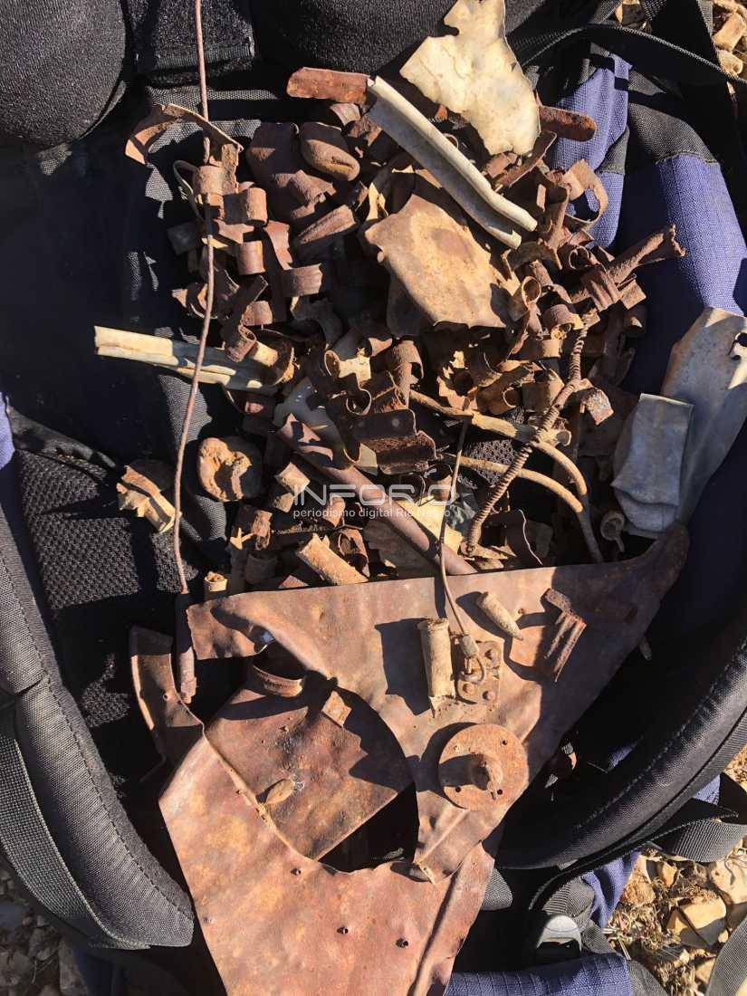 Gonzalo Berger, que es arqueólogo y docente universitario, detalló que fueron encontradas más de 200 piezas en esta primera búsqueda. Principalmente partes del fuselaje y del motor de un avión de origen soviético, también restos de balas, cintas para munición y otros elementos.