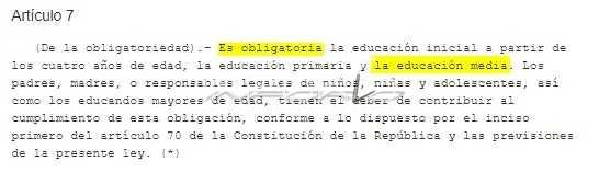 Antes de la LUC, en lugar de “educación media”, la normativa señalaba “educación media básica y superior”, distinguiendo entre los dos ciclos de tres años cada uno que conforman la educación secundaria o media en Uruguay.