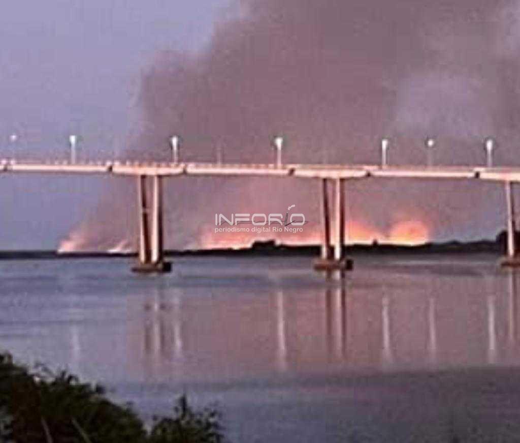 Incendio en isla uruguaya frente a Río Negro