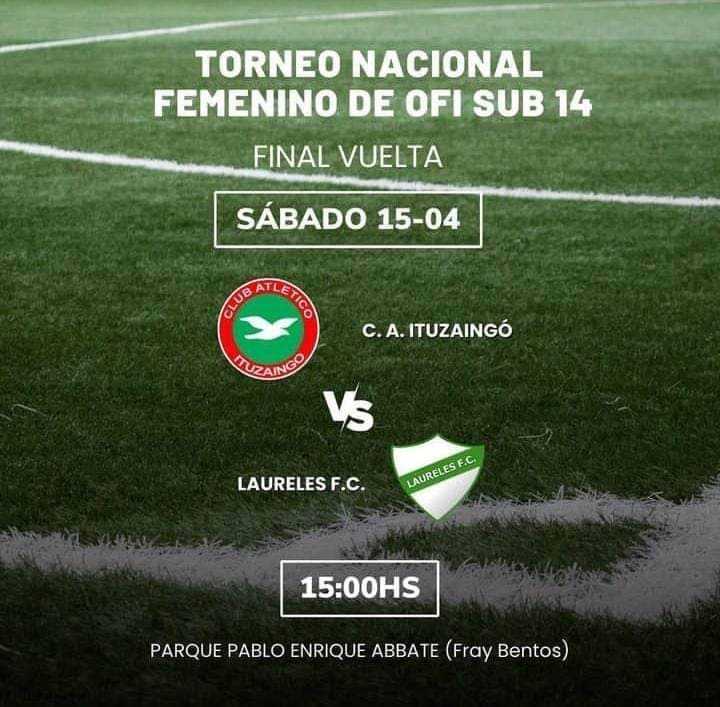 El conjunto Ranero, deberá ganar para forzar los penales, partido que se jugará en el Parque Abbate, sobre las 15:00 horas del sábado. Laureles buscará el título de Campeón Nacional Femenino de OFI, en categoría Sub 14 e invitamos al público a acompañar a las chicas que nos representan.