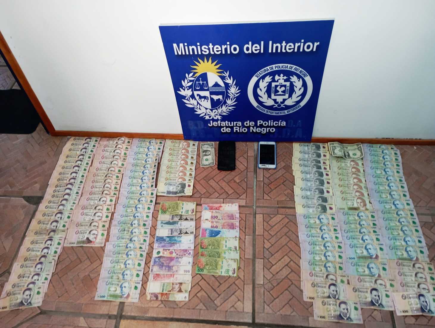 Varios envoltorios conteniendo marihuana, otro con cocaína, dinero en efectivo monedas uruguaya, moneda argentina y dólares, 3 teléfonos celulares, un auto, una camioneta y una moto, todo lo cual es elevado a manera de información a la Fiscalía que corresponde.
