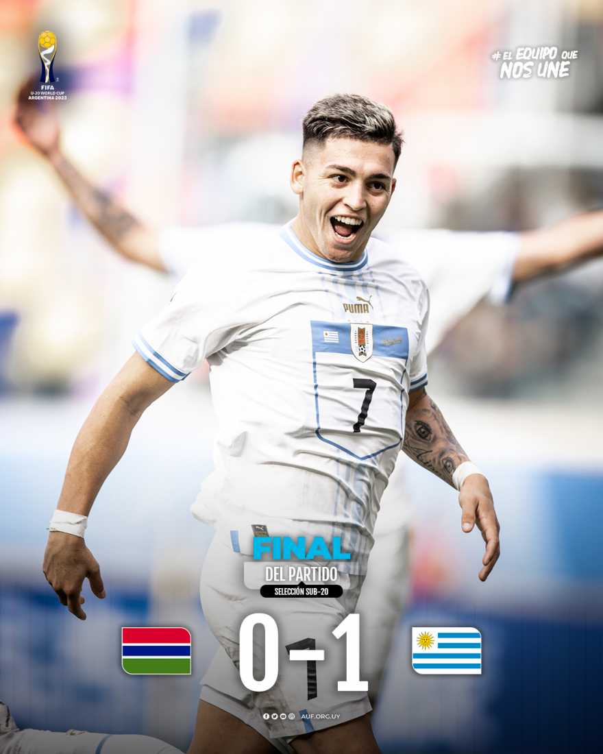 Trabajoso y esforzado triunfo de la selección Celeste Sub 20, en el Mundial que se disputa en Argentina, hoy al enfrentar a su similar de Gambia.