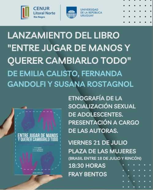 Hoy viernes 21 de julio, a la hora 18.30 en la sala de la Plaza de las Mujeres de Fray Bentos se presentará el libro “Entre jugar de manos y querer cambiarlo todo”.