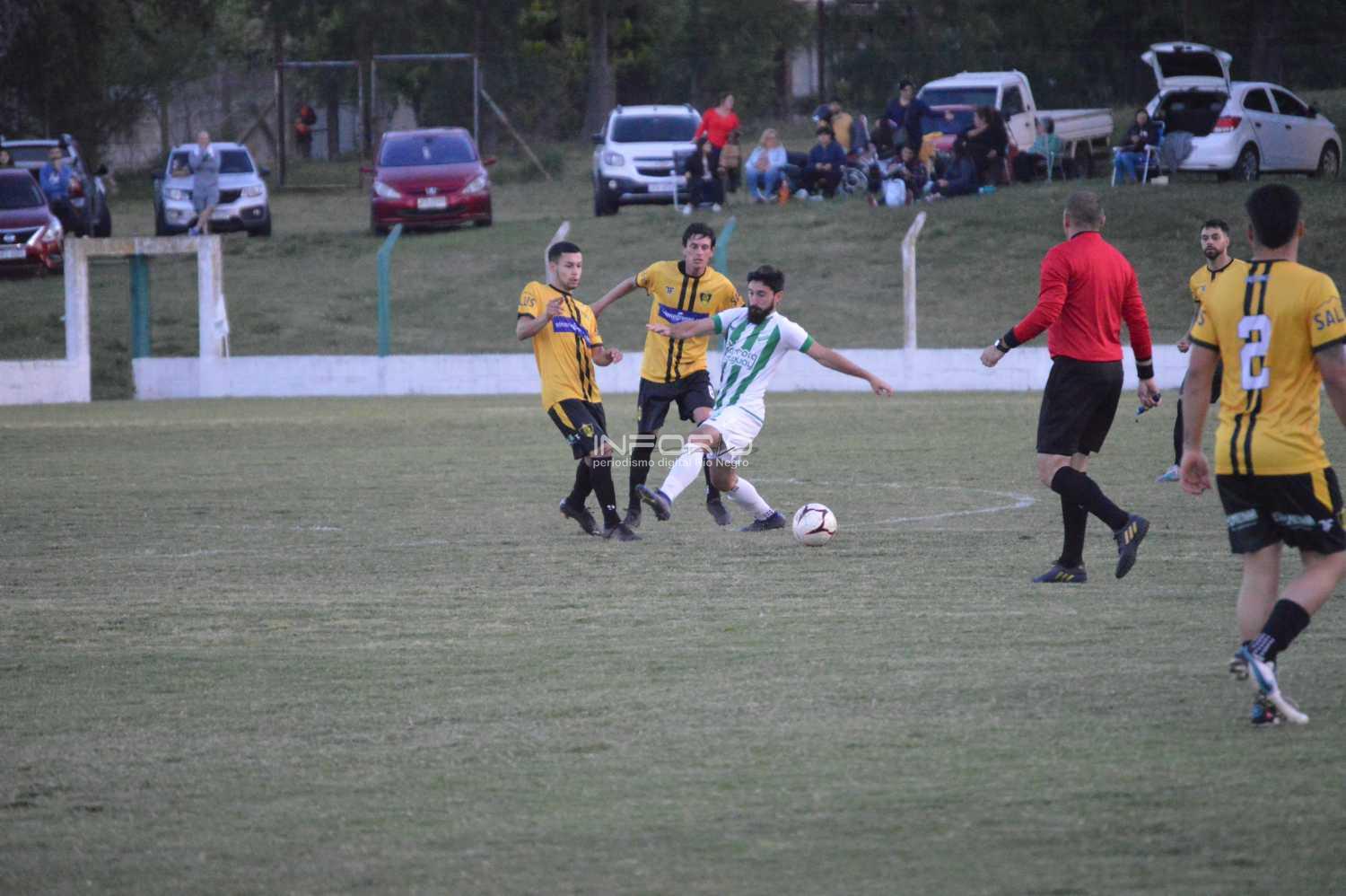 Le costó reaccionar a Laureles y recién a los 36´ tras una fallida de la defensa y golero Gorrión, Excequiel Vázquez(L) anota el empate. Otro zapatazo por encima del golero de Varietti(FB) a los 40¨PT pone el 2-1 para los Aurinegros y un minuto más tarde, tras corrida, desborde y centro atrás por derecha de Sebastián Rosano(L), el defensa central Valli al querer sacar el balón, lo introduce en su propio arco y es el empate para el final del primer tiempo.