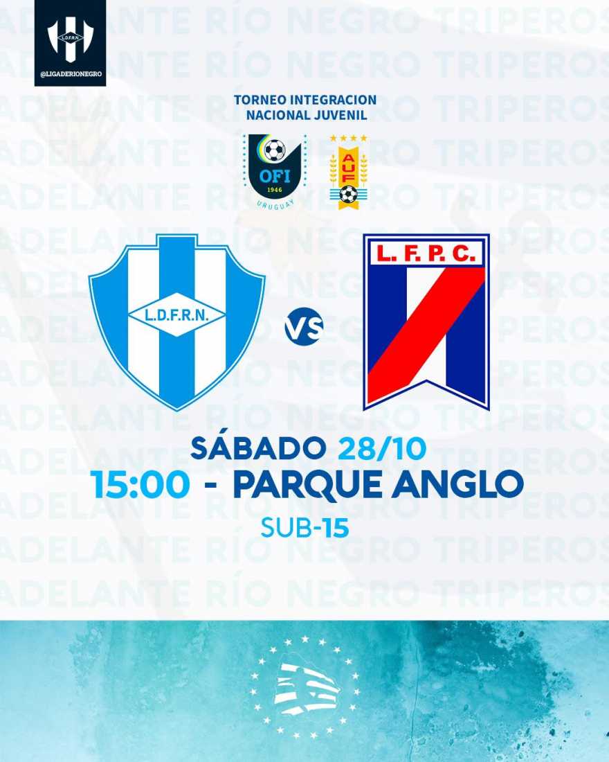 Los chicos representantes de la Liga Dptal. de Futbol de Río Negro, juegan ante sus similares del Paysandú FC en cancha de Anglo, con los siguienntes detalles: