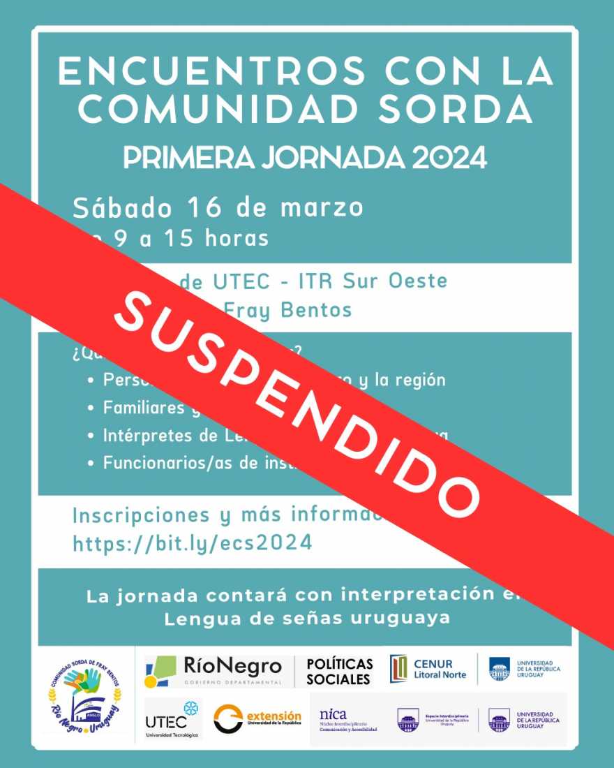 Desde la Casa de la Universidad de Río Negro se comunica la suspensión de la actividad denominada: “Encuentros con la comunidad sorda”.