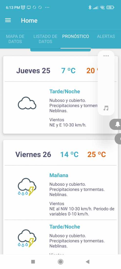 INUMET realizó el siguiente pronóstico del tiempo para los próximos días: