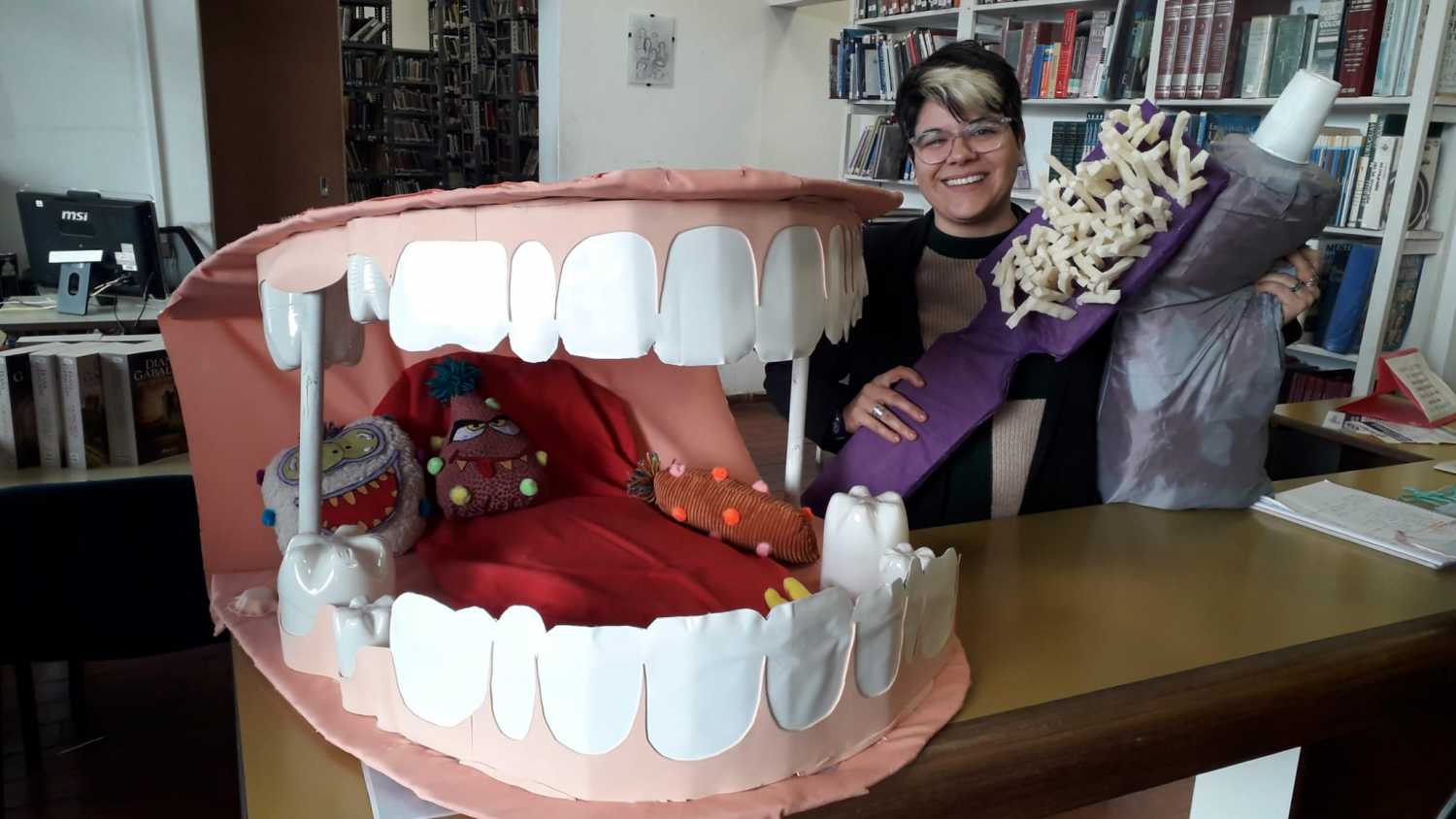 La Directora de la Biblioteca, Adriana Tiscornia, expresó que le pareció una temática interesante para cambiar la narrativa, llevándola a escena con un material reciclado, dejando un doble mensaje, reutilizando para ayudar al medio ambiente, por lo que se confeccionó con todo el equipo de la Biblioteca, una gran boca, en la cual se desarrollan las bacterias por falta de higiene bucal, producto del excesivo consumo de dulces, exhibiendo al mismo tiempo un gran cepillo de dientes, como parte de la solución al problema.