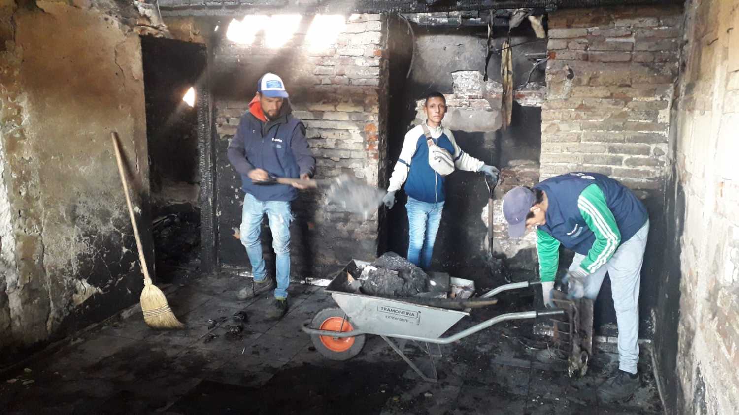 Con el despliegue de 4 funcionarios que cumplen tareas durante seis meses para el Programa Accesos del Ministerio de Desarrollo Social, se está cumpliendo la tarea de limpieza de la vivienda siniestrada en el barrio Cobena, donde lamentablemente residía la vecina Marta Terechenko, que perdiera la vida a causa del incendio.
