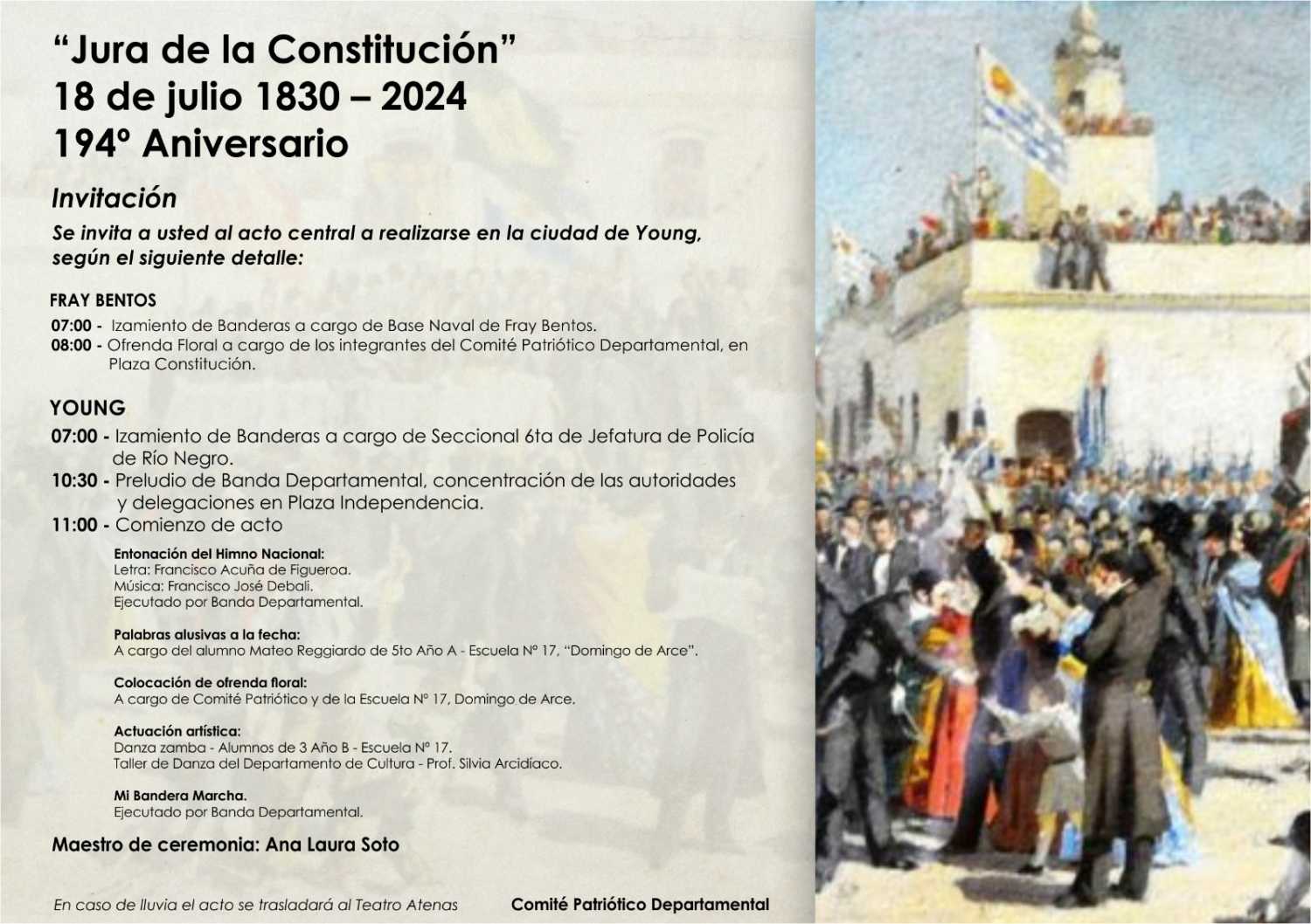 Se cumplen 194 años de la Jura de la Primera Constitución de nuestro país y para celebrarlo se realiza el acto central en la ciudad de Young.