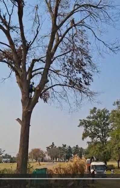 Ante la preocupación que habían trasmitido vecinos del barrio Anglo por el peligro que significaba la presencia de un enorme árbol con riesgo de caerse encima de alguna casa, una cuadrilla municipal con maquinaria adecuada se hizo presente para solucionar la problemática.