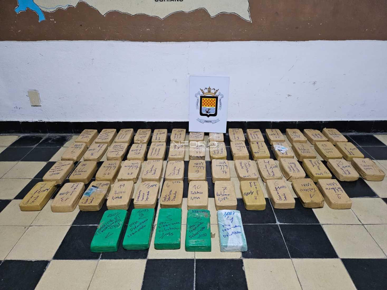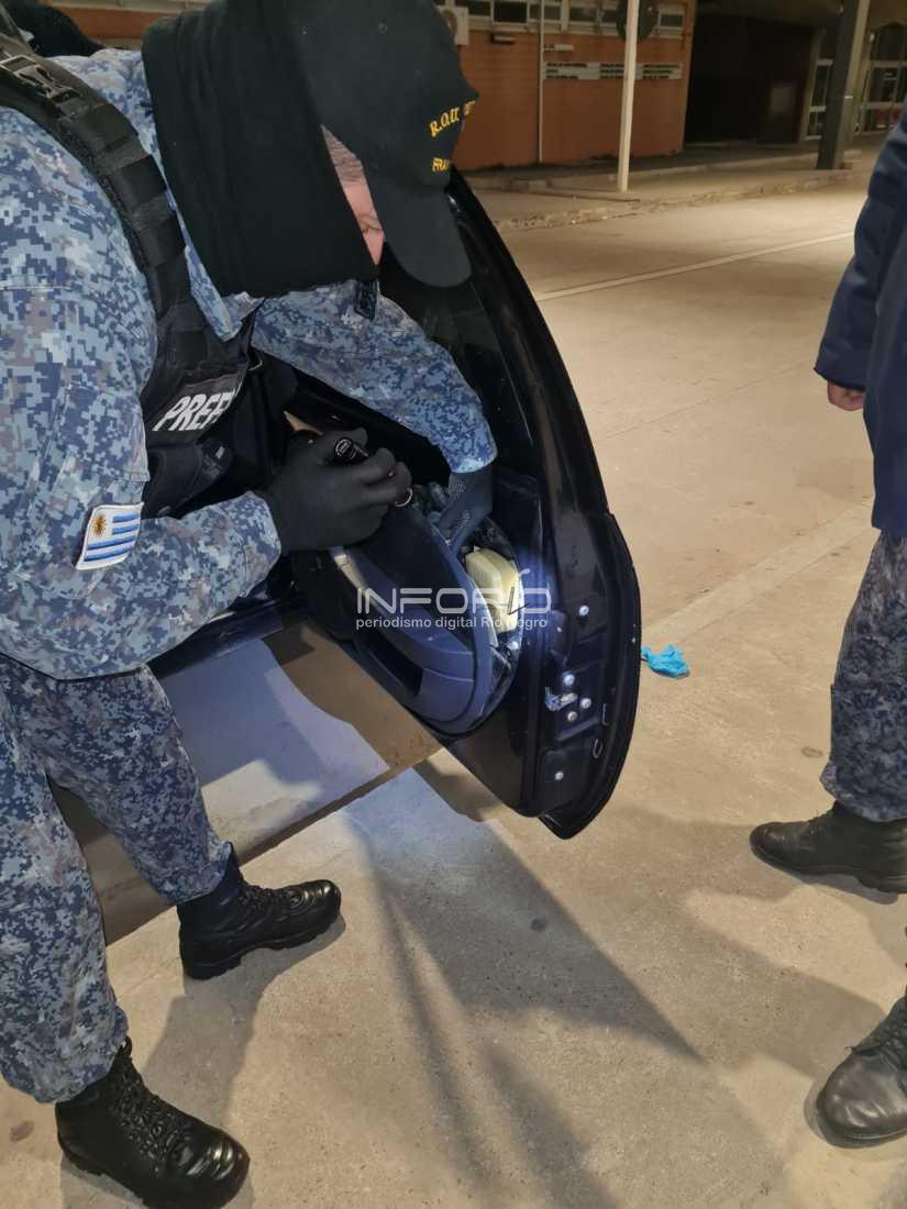 El operativo de prefectura se cumplió entre la medianoche y la madrugada sobre un auto matriculado en Soriano, que pretendía ingresar la sustancia ilegal distribuida en varias partes del vehículo.