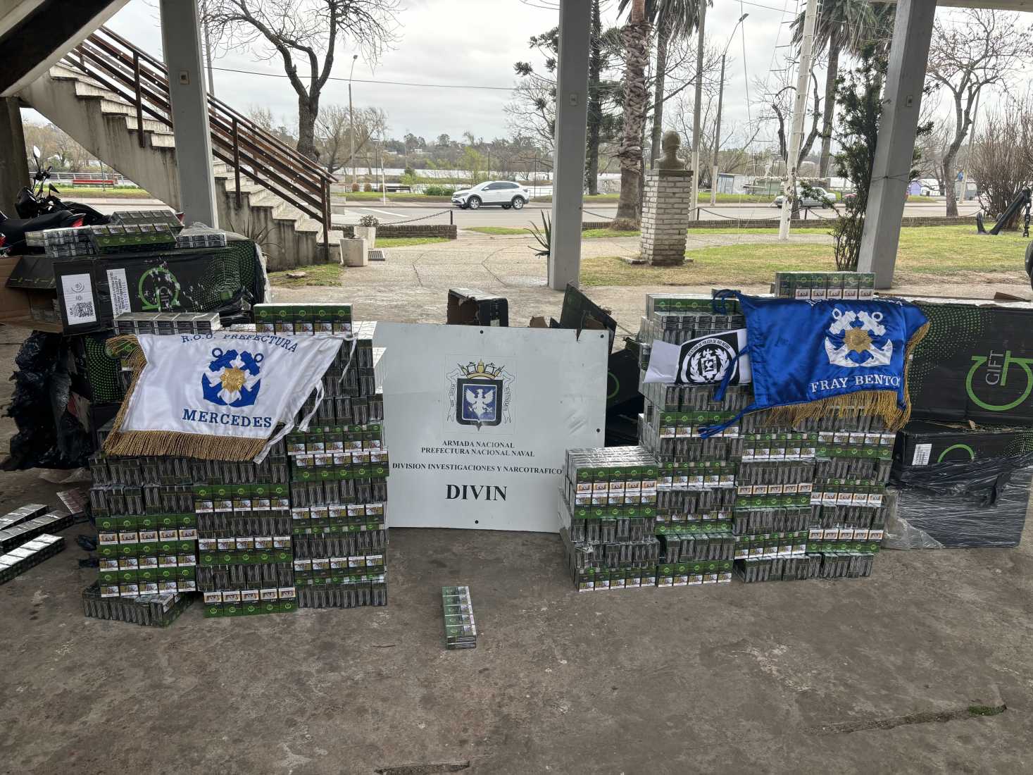 Se incautaron 14.500 cajillas de cigarrillos que estaban siendo ingresados por el rio Negro a Mercedes. El monto supera los 2 millones y medio de pesos.