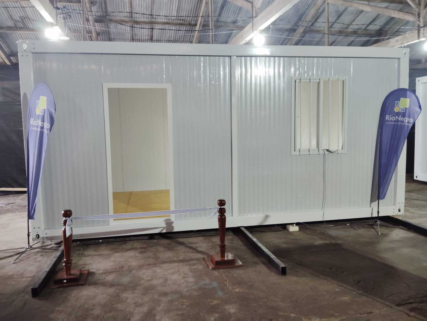 En lanzamiento efectuado en el galpón 54 del ex frigorífico Anglo y en presencia de autoridades departamentales, dio inicio el proyecto de instalación de 40 módulos prefabricados, con la finalidad de dar respuesta rápida a situaciones de emergencia habitacional en Río Negro, donación de la ciudad de Suzhou, China. La Directora de Vivienda, Alejandra Vila, indicó que las unidades van a ser utilizadas en eventos climáticos, problemas sociales e incendios. Cada módulo tiene 18 metros cuadrados, similares a un monoambiente, pero sin servicios, rápidamente armables y desarmables. El arribo se produjo con la necesidad de atender el problema de la vivienda y las situaciones de emergencia. En principio se comenzaron a armar algunos proyectos de apoyo al Plan Avanzar, erradicación de la vivienda irregular, pero en la nueva gestión que se comenzó a trabajar en el mes de marzo con la asunción de las nuevas autoridades, el Ministerio de Vivienda se abrió del proyecto y dejó que la administración quedara en manos de la Intendencia de Río Negro, para abordar casos de emergencia y no de vivienda definitiva. En principio se trasladarán a pequeñas localidades, Paso de la Cruz, Mellizos, Sarandí de Navarro, pero también habrá para Young y Fray Bentos.