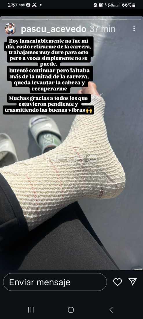 Los podios fueron esquivos para los atletas Celestes y nuestro representante rionegrense Pascual Acevedo, a poco de iniciada la competencia tuvo unna torcedura de tobillo, siguió a pesar de ello pero en la mitad de la competencia hubo de abandonar por la lesión, que fue un esguince de tobillo, que inclusive terminó en un Centro Asistencial de Salud.