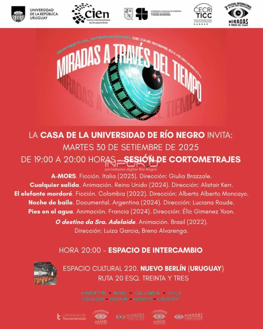 La Casa de la Universidad de la República de Río Negro hace una invitación abierta a todo el público para participar de una actividad de cine denominada “Miradas a través del tiempo”.