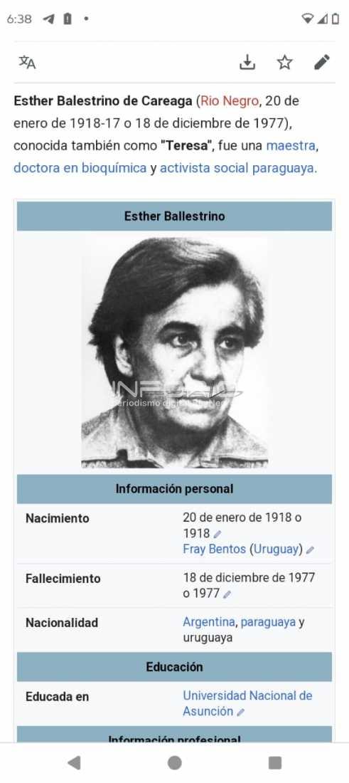 “QUINTA DETENIDA DESAPARECIDA NACIDA EN FRAY BENTOS, ESTHER BALESTRINO CAREAGA.