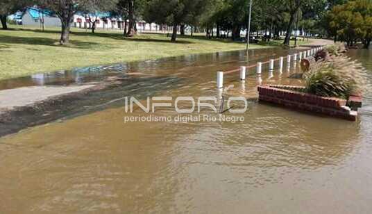 Una postal que se da en Nuevo Berlín por estas horas es que el agua ha cortado parte de la rambla costanera. Debido a la crecida del río Uruguay es que se da esta situación en la villa que por el momento no tiene evacuados.
