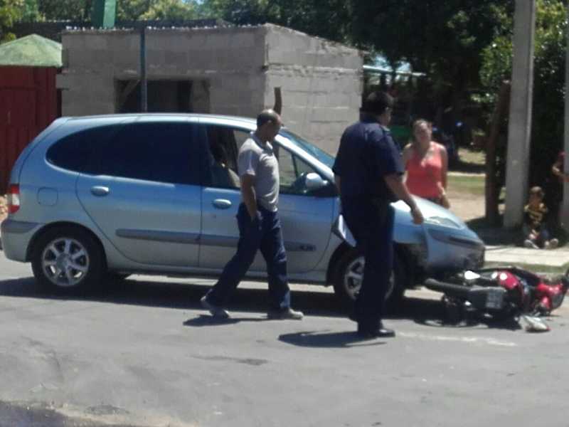 (Marcelo Rodríguez) Esta mañana se produjo un siniestro de tránsito en el barrio Las Canteras entre un auto y una moto. El automóvil Citroën matrícula IAB 5975 circulaba por calle Rivera con dos ocupantes, el masculino que conducía y su esposa como acompañante. Al llegar a la esquina de Abayuba se produce la colisión con una moto Yumbo 110cc matrícula JFI 891 con dos jóvenes que cayeron al pavimento. El impacto se da cuando la moto pretendía ingresar a Rivera.
