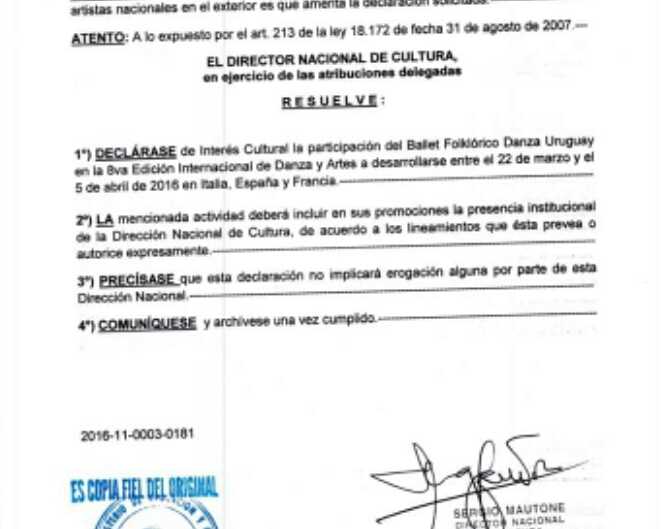 Por eso es que el ministerio de Educación y Cultura (MEC) considera que realiza un aporte cultural y dicha participación contribuye a la difusión de artistas nacionales en el exterior y decidió declararlo de interés cultural.