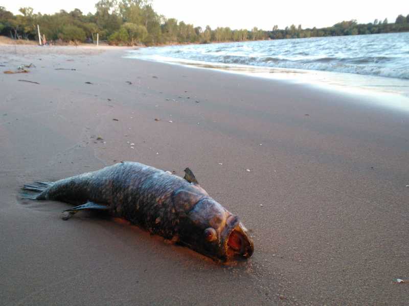 Según se ve en las fotografías, varios peces y de distinta especie aparecieron muertos a lo largo de la orilla. También una tortuga fue encontrada en el lugar. La situación ya fue alertada a las autoridades del balneario Las Cañas que llevaron algunos peces para tomar muestras que fueron enviadas a la dirección de Higiene para determinar la causa de esta mortandad.