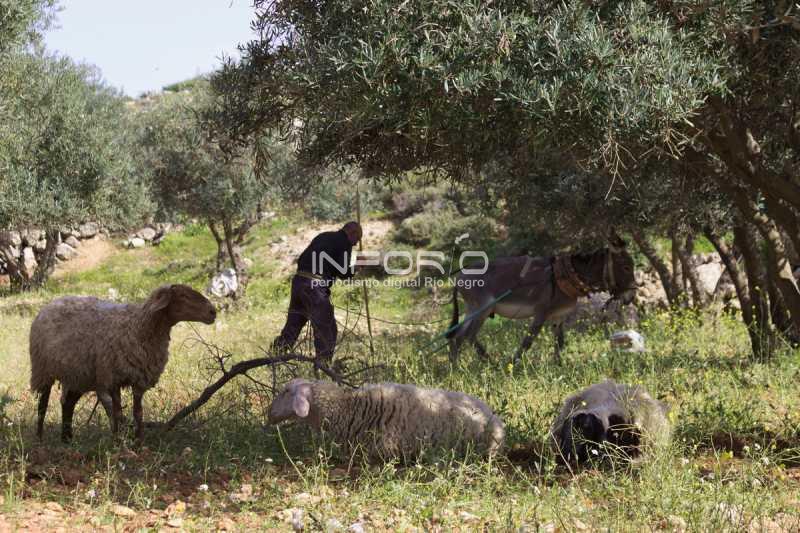 Su rutina de trabajo implica pastorear sus ovejas y cabras, en una zona de sierras, muy rocosa, donde no es fácil encontrar buen forraje. A veces cuenta con la ayuda de sus nietos, adolescentes entre 12 y 14 años, quienes conocen bien la tarea y pese a algún rezongo aislado, casi no precisan supervisión para dirigir a los animales. Ese fue el caso de esta mañana, donde lo acompañaron dos nietos, Abed y Daleel. A diferencia de las preocupaciones cotidianas que podría tener cualquier productor en Uruguay, Abu Mohamed tiene otros riesgos a considerar cada vez que parte a trabajar. Su casa, su campo y su vida están ubicados al sur de Hebrón, en Palestina.
