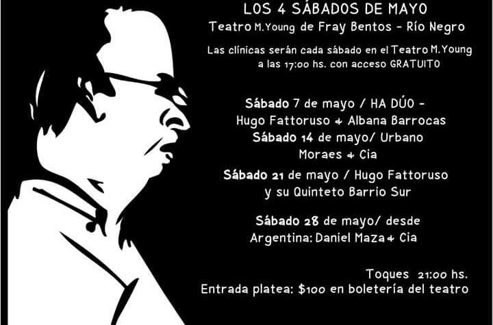 Centros MEC Río Negro, anunció que en Fray Bentos el se realizará el "1er Homenaje a Osvaldo Fattoruso en Uruguay". Serán los 4 sábados de mayo en el teatro Miguel Young.