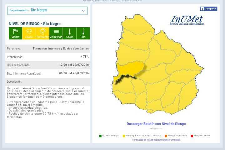 Este Informe se Actualizará:06:00 del 26/07/2016