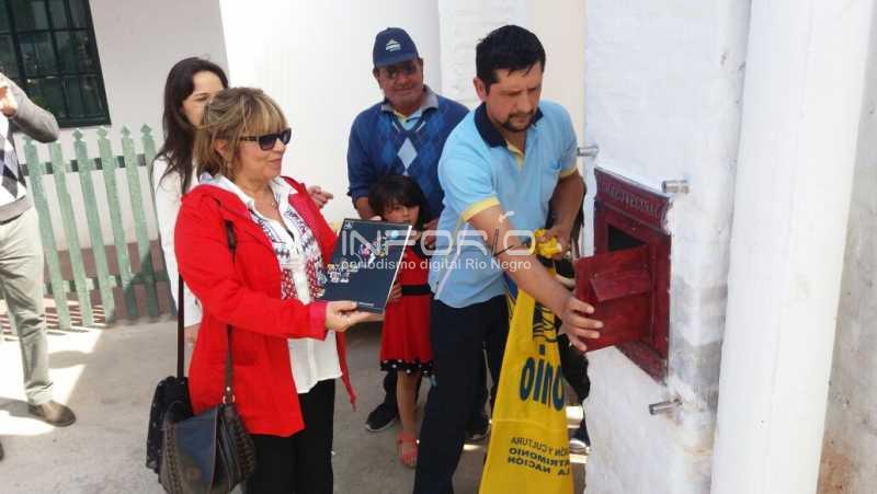 Depositando cartas que serán abiertas en 2057, el correo celebró el Día del Patrimonio, en el histórico barrio Anglo.