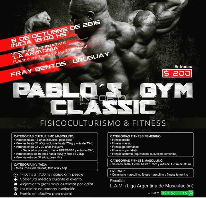 Se está, ultimando detalles, para el gran evento de octubre, donde el gimnasio Pablo´s Gym de Pablo Sánchez, viene organizando un Sudamericano de Fisicoculturismo, clasificatorio al Mundial. Los 2 primeros de la general, competirán en el Mundial de Santiago del Estero (Termas de Río Hondo), el 5 y 6 de noviembre próximo.