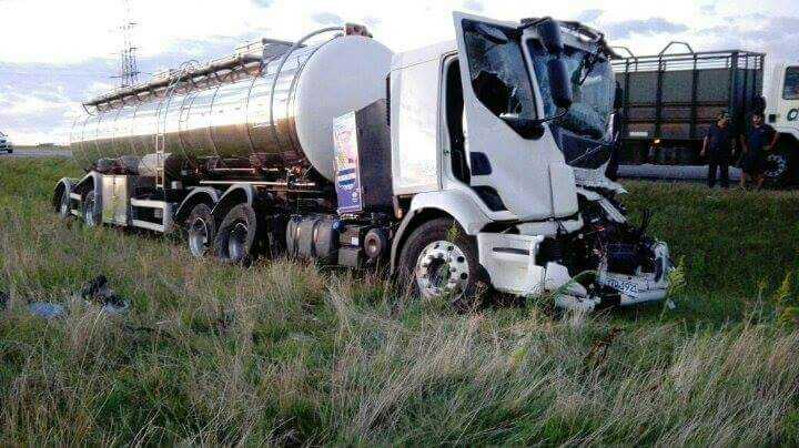 Un camionero que transportaba leche desde el departamento de Rocha a un establecimiento de la zona, sufrió un siniestro de tránsito al impactar contra un camión ganadero que circulaba adelante.