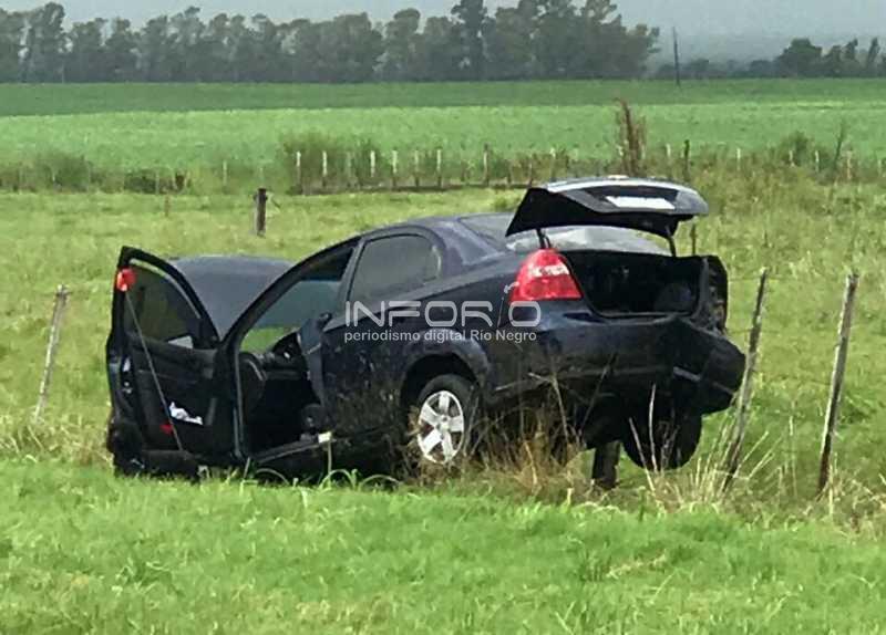 A la altura del kilómetro 298 de la ruta 3, el automóvil presumiblemente por la velocidad que llevaba y el estado del piso por la lluvias, se despistó y terminó contra un alambrado.