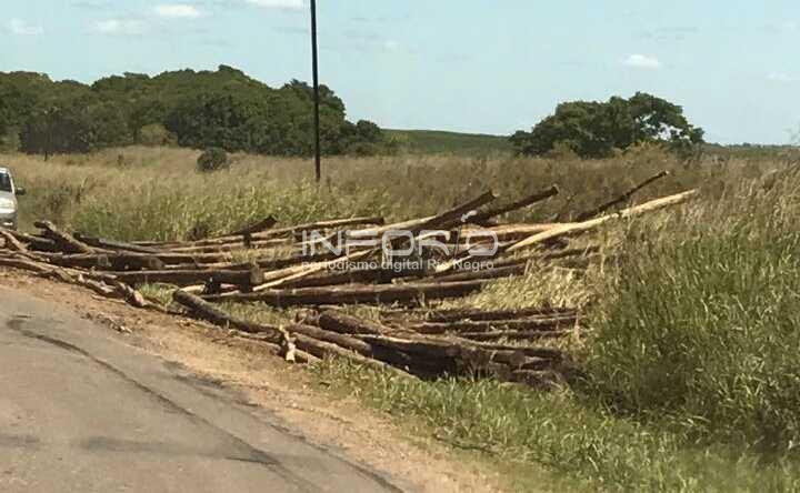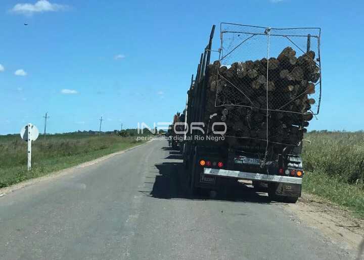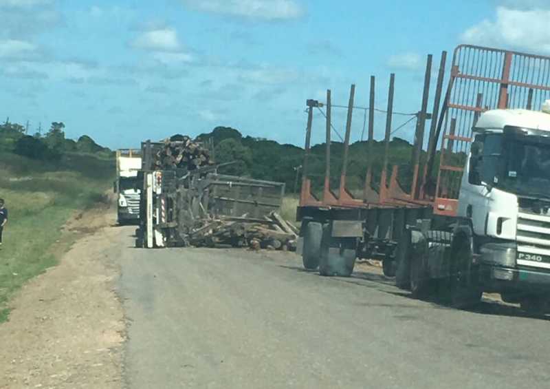 Este domingo a mediodía se registró un vuelco de un camión cargado con madera en ruta 25.