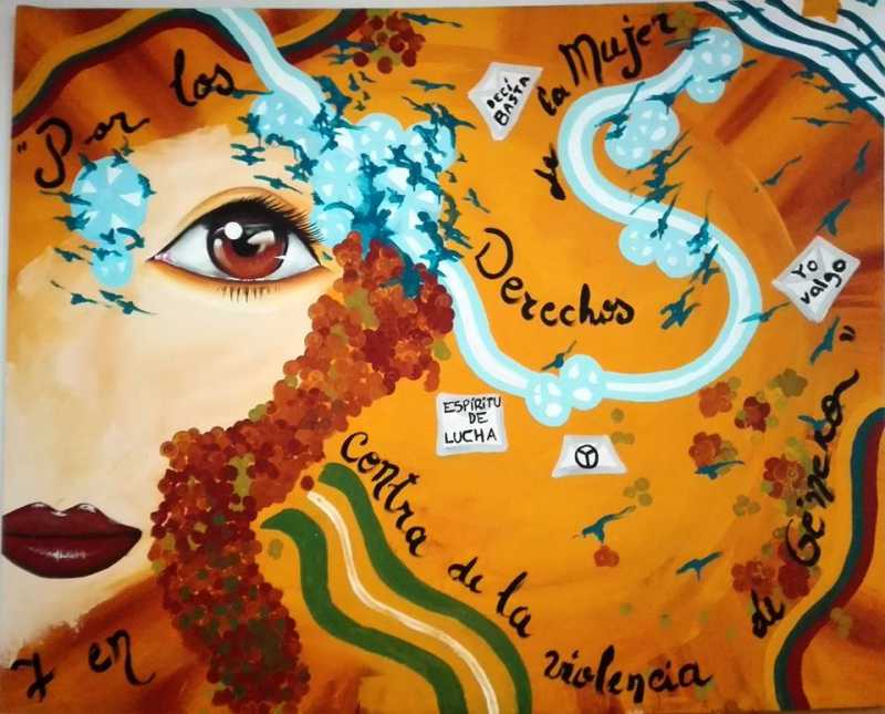 Fotografía del mural en homenaje a las mujeres que se encuentra en la sede de ADEOM en Fray Bentos. El mismo fue realizado por varios artistas plásticos de Fray Bentos y alumnos de Bachillerato Artístico en el año 2013.